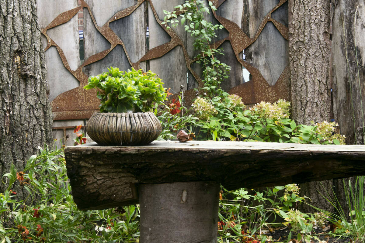 Om een groene tuin te creëren hergebruik je zoveel mogelijk of kies voor tweedehands materialen. Heb je toch nieuwe materialen nodig? Ga dan voor duurzame opties, zoals inlands douglashout, tamme kastanjehout, cortenstaal en olivijn grind. Dat laatste grind absorbeert CO₂ uit de lucht.