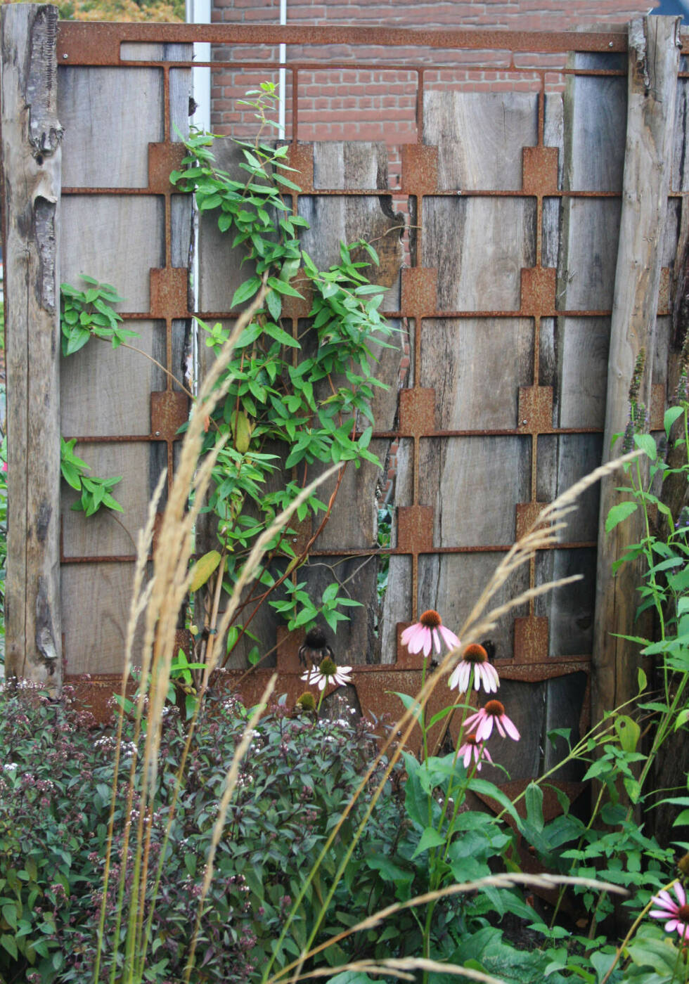 Kies als erfafscheiding van je groene tuin bij voorkeur voor een haag. Een haag haalt fijnstof uit de lucht en is een prettige broedplaats voor vogels. Wil je toch liever een schutting? Neem dan een aantal klimplanten die langs je schutting omhoog klimmen. Ook een gevel kun je goed vergroenen met klimplanten.