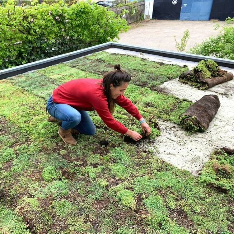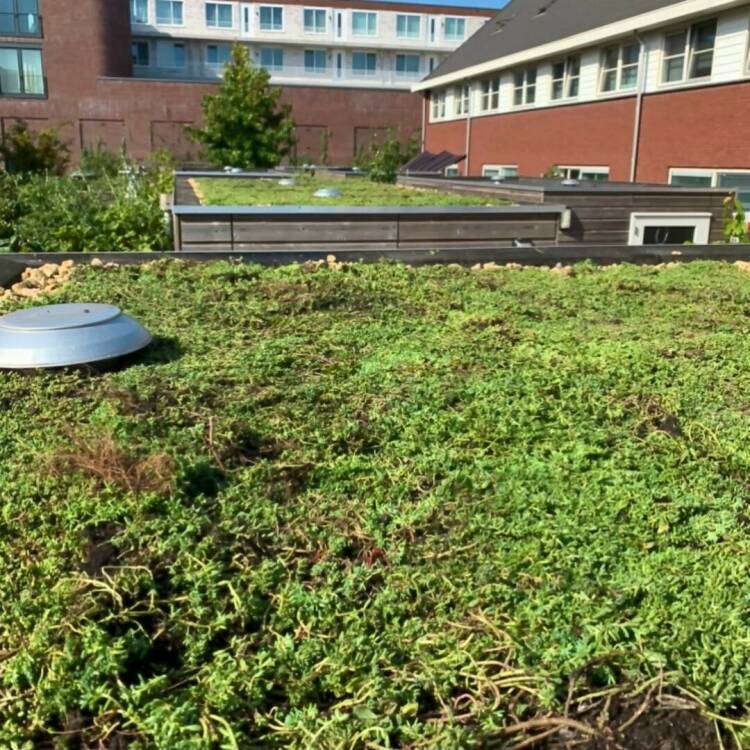 “Een groendak draagt bij aan de natuur en verhoogt de biodiversiteit. Het werkt daarnaast als een natuurlijke luchtfilter. Groen in het algemeen draagt bij aan een betere luchtkwaliteit, mede dankzij de luchtzuiverende werking. Dat geldt ook voor de sedumplanten op een groendak.”